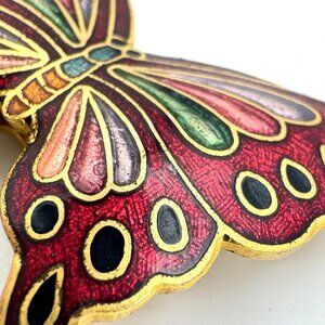This vintage cloisonné butterfly belt buckle or bolo tie features vibrant hand-painted enamel details, adding an elegant and timeless touch to accessories.