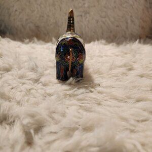Vintage Cloisonné Elephant Figurine 4" Intricate Enamel Work & Brass Accents