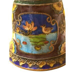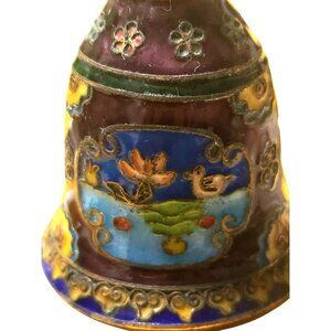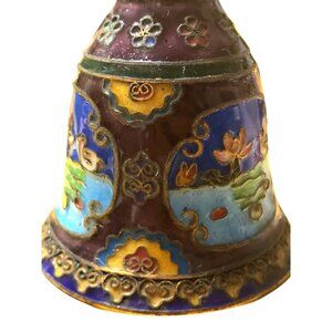 Vintage Cloisonné Enamel Bell With Intricate Floral & Bird Design Purple Blue