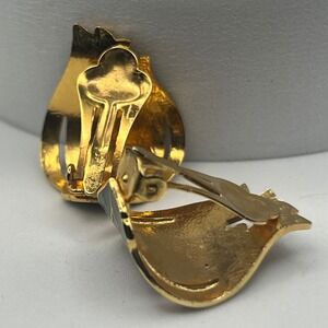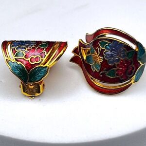 Vintage Cloisonné Enamel Earrings Blue Red Gold Tone Butterfly Floral Clip On
