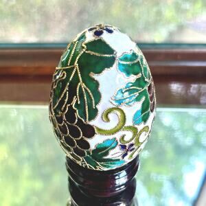Vintage Cloisonné Enamel Egg with Grape and Leaf Design – with Stand