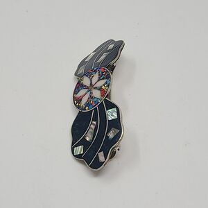Vintage Cloisonné Enamel Flower Black Abalone Barrette Hair Snap Clip 3.5" In great condition.