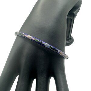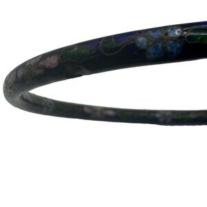 This vintage cloisonné bangle features delicate flower designs, adding an intricate and artistic touch to any jewelry collection. Its elegance lies in the detailed craftsmanship of the floral patterns, making it a timeless piece for those who appreciate classic beauty.