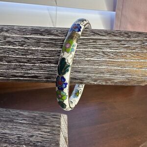 Vintage Cloisonné Hinged Round 360 design White Blue Gold Green