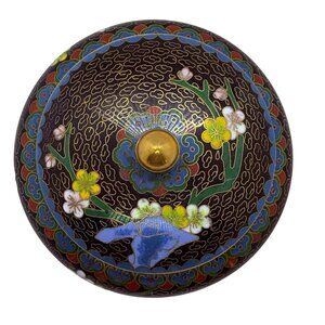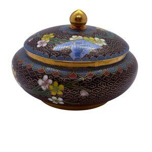 Vintage Cloisonné Lidded Jar With Floral Design & Gold Accents