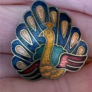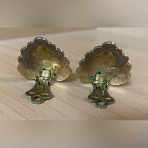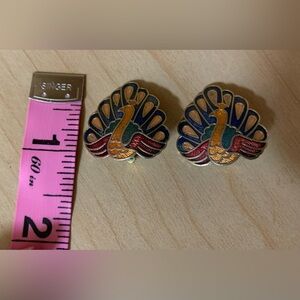 Vintage Cloisonné Peacock Clip On Earrings Blue Pink