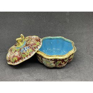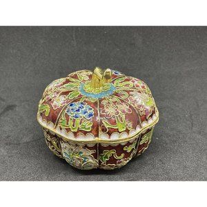Vintage Cloisonné Trinket Box - Pumpkin Shaped -