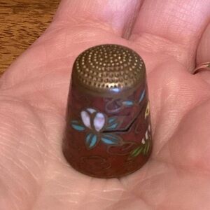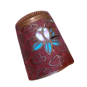 Vintage Cloisonne Bird and Lotus Flower Thimble