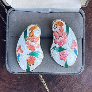 Vintage Cloisonne Earrings Large studs Floral bohemian Jewelry