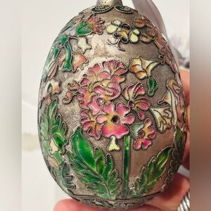Vintage Cloisonne Enameled Eggs Floral Bumble Bees, Gold Plated Copper 3”