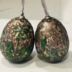 These eggs are a perfect example of Victorian Enameling's commitment to style and quality. With their Asian-inspired design, they are sure to be a unique addition to any collection. Whether you're a collector of decorative items or simply looking for a beautiful piece to add to your home decor, these eggs are an excellent choice.