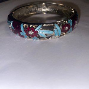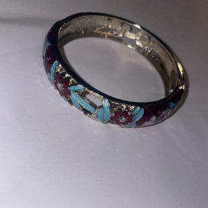 Vintage Cloisonne Enameled Hinged Bangle Bracelet