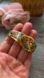 This elegant gold bracelet features a beautiful floral design with vibrant red and green accents. Perfect for adding a touch of sophistication to any outfit.