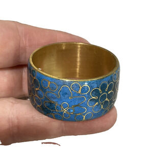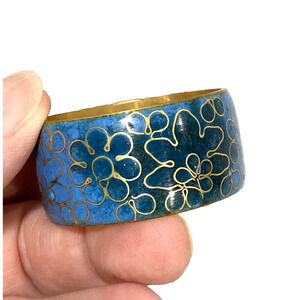 Vintage Cloisonne Style Napkin Rings - a matching set of 8 - gorgeous shades of blue enamel in a mod floral design on brass rings. No hallmarks but these are nice quality probably circa 1970's or 1980's. In excellent vintage condition - minor surface wear but no damage or flaws - absolutely stunning set!
