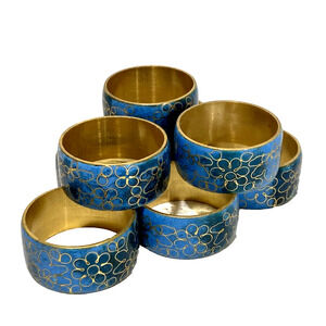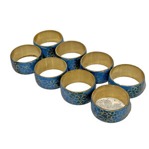 Vintage Cloisonne Napkin Rings Set of 8 Blue Enamel Mod Floral Design on Brass