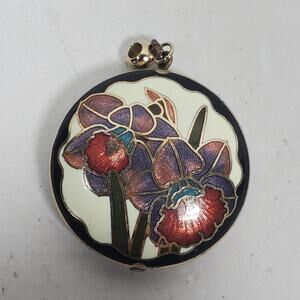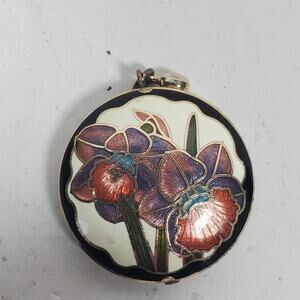 Vintage Cloisonne Pendant 1.25 Inch Floral w/ Black Trim