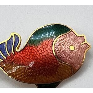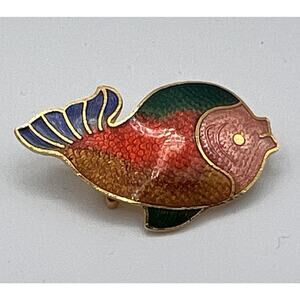 Vintage Cloisonne Tropical Fish Pin Brooch 1.5" Gold Tone Orange Red Saltwater