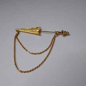 Vintage Closed Umbrella Metal Stickpin Brooch With Chains