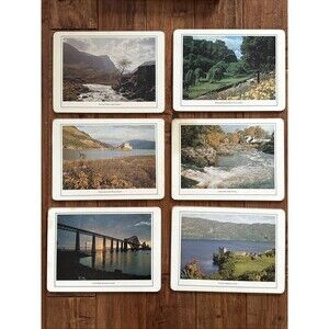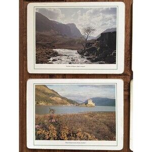 Vintage Clover Leaf Table Mats Placemats Scotland Castles Cork Back Set of 6