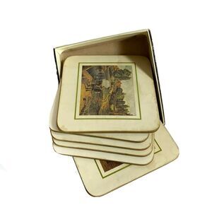 These coasters are in great condition for their age and are ready to protect your surfaces in style. Perfect for collectors or anyone who appreciates vintage home decor. Don't miss out on this lovely set!