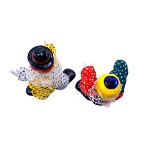 These clowns are here to juggle your heartstrings and your mantel space. A colorful duo that’s anything but shy.