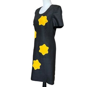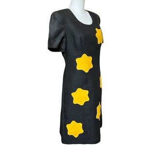 Vintage 80s/90s dress from Club France with bold, yellow, star appliqué on front.