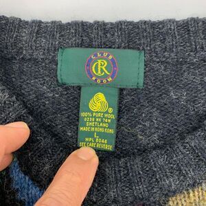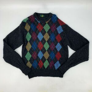 Vintage Club Room Shetland Wool Sweater Mens L Large Argyle Plaid Crew Neck 90s