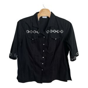 Vintage Club Z Demin Blouse Women's Size 3X Shirt Black 3/4 Sleeve Metal Studs
