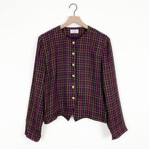 Vintage Clueless 80s 90s Plaid Blazer Jacket Pink Purple Green Size Large USA