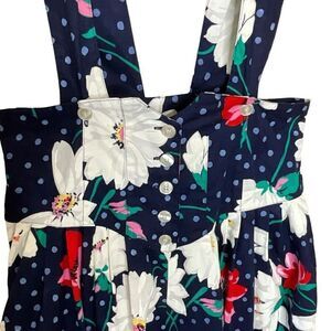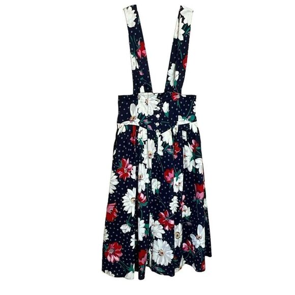 Vintage Clues Collection 10 Overall Dress Black Floral Adjustable Straps Cotton
