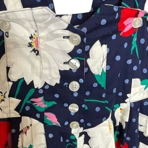 Vintage Clues Collection Womens Size 10 Overall Dress Black Floral Adjustable Straps 100% Cotton
