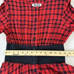 Vintage Clues Collection Plaid Long Sleeve Red Black Dress Pockets Button Front