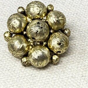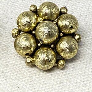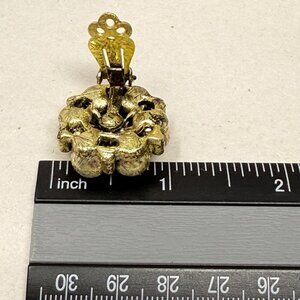 Vintage gold-tone clip-on earrings with a classic cluster bead design. Retro elegance perfect for adding a touch of timeless style to any outfit. Ideal for non-pierced ears.