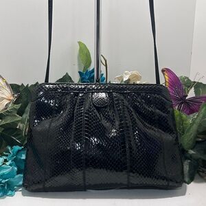 Vintage Clutch Crossbody Bag Women's Medium Black Textured Snakeskin