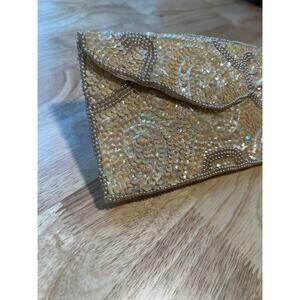 Gold beaded, vintage clutch envelope wallet
