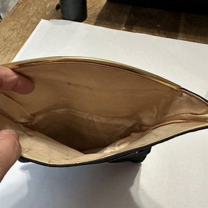 Vintage Clutch Fold Over Foldover Brite Mode Black Formal Evening Gold Trim