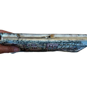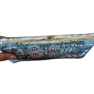 Vintage Clutch Purse Handbag Embroidery Design Street scene 10" long READ