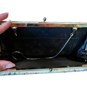 This is a cool vintage embroidery purse with a street scene on it. This purse is in very good condition except that the strap is broken. You can easily use it as a clutch with the strap tucked into the purse with no signs of it being broken, or you can repair the strap. the embroidery is very nice, as is the rest of the purse. It is 10" long and 5" wide. A great purse!
