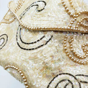 References: Sparkly Sequins Hand Clutch for Holiday Formal Event Date Night Formal Event Cream with Brown and Tan Elegant Chic Clutch