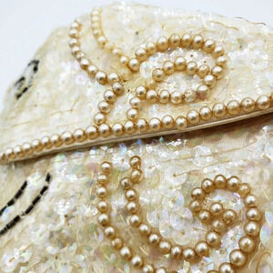 Amazing clutch that appears to be new. As with vintage, there are a few ravels, but nothing that you can't cut off if you deem necessary. All sequins appear to be present.