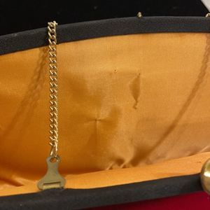 This black vintage clutch is in great condition! Measuring 12 1/2”x 5 1/2”