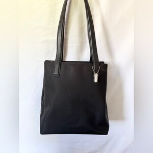 Medium size 2001 Black twill Coach with leather bottom handles and trim silver metal hang tag snap closure, clean inside and out excellent condition for being this age!