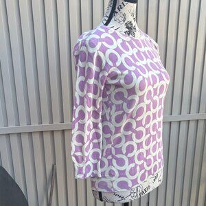 Elegant Coach top vintage with lavender purple and white monogram C logo throughout. Crafted in Italy. Excellent preowned condition. Beautiful vintage sweater shirt that is soft and comfortable. Size XS.