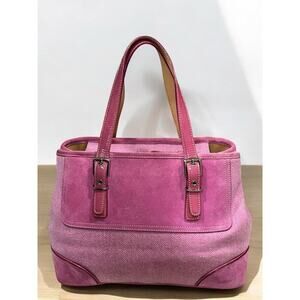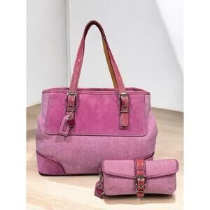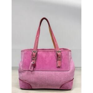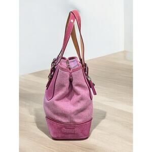 This Vintage Coach 1408 Hamptons Herringbone Wool Satchel and FS5878 Wristlet set from 2004 is just adorable! Featuring Orchid Pink herringbone wool with pink suede/patent leather trim, this set is just as stylish and sought after today as it was over 20 years ago. If you love the Y2K vintage Coach looks, you need this set in your collection!
