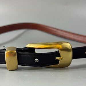 Vintage Coach # 3909 Black Leather Brass Buckle Women's Skinny Belt, Large