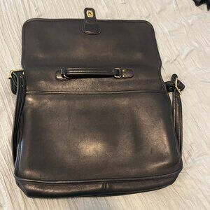 This is an Authentic Coach leather briefcase, in navy with brass hardware. It is the 5180 style, from around 1996. I am the original owner and have always lived in a smoke-free home. I used the bag sparingly and kept it well-maintained. It does show the marks of use found on vintage leather.