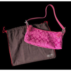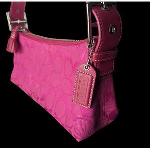 Vintage Coach 6371 Hampton Signature Baguette Shoulder Bag Hot Pink Canvas Y2K