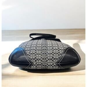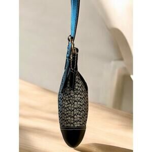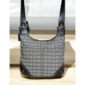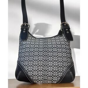 This Vintage Coach 6386 Mini Signature Soho Hippie Bag from 2003 is such a classic Coach style and design! Featuring Signature Jacquard in a mini print in black/gray with adjustable black leather straps and trim, this bag is perfect when you want a functional crossbody with Y2K vibes. If you love the quality and style of vintage, preppy, Y2K Coach, you need this bag in your collection!