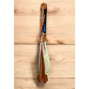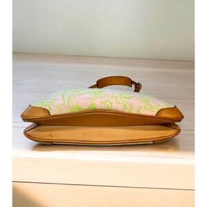This Vintage Coach 8913 Girlie Floral Twill Hobo & Matching Wristlet from 2001 is just adorable! Featuring light pink twill fabric with a green floral leaf motif and vachetta leather handle and trim, this little set is perfect when you want to travel light. The Coach Girlie line was known for its smaller silhouettes with pretty floral fabrics and a full set is a rare find. If you love the Coach Y2K, preppy, vintage look, this set is a must have in your collection!
