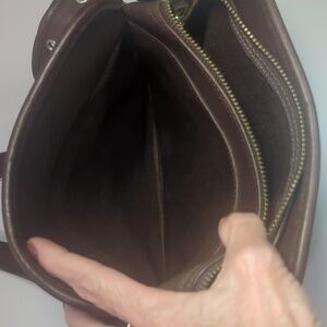 Vintage Coach North South Compartment bag 9168 in good used condition. This bag could used a good cleaning and rehab treatment. This bag has a faint odor, maybe cigarettes? This bag is sometimes called a crossbody but the strap is too short for a comfortable crossbody.